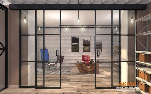 - Стеклянные. Для заполнения профиля используется закаленное или ламинированное стекло. Назначение — дополнительный источник света, декоративный элемент. Такие перегородки обладают высокой износостойкостью, поэтому прослужат долго без потери внешней привлекательности.