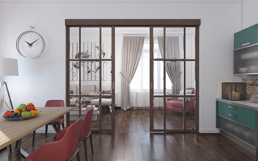 - Глухие. В качестве материала заполнения выступает непрозрачная основа — ДСП, гипсокартон и т.д. Заменяет глухие стены.