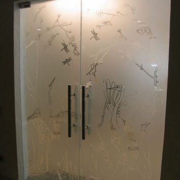 По желанию клиентов, специалисты компании «Луккомфорт» могут нанести на полотно стеклянных дверей различные изображения. Выполняется это несколькими способами. Можно использовать пескоструйную обработку, химическое травление или нанести фотографию методом фотопечати.