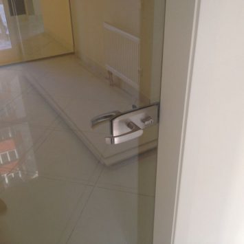 Вдобавок к этому, в комплект распашных дверей из стекла входят замки, что имеют нажимной гарнитур, а также дверные петли.