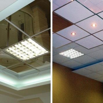- Растровые светильники устанавливаются вместо стеклянного элемента.